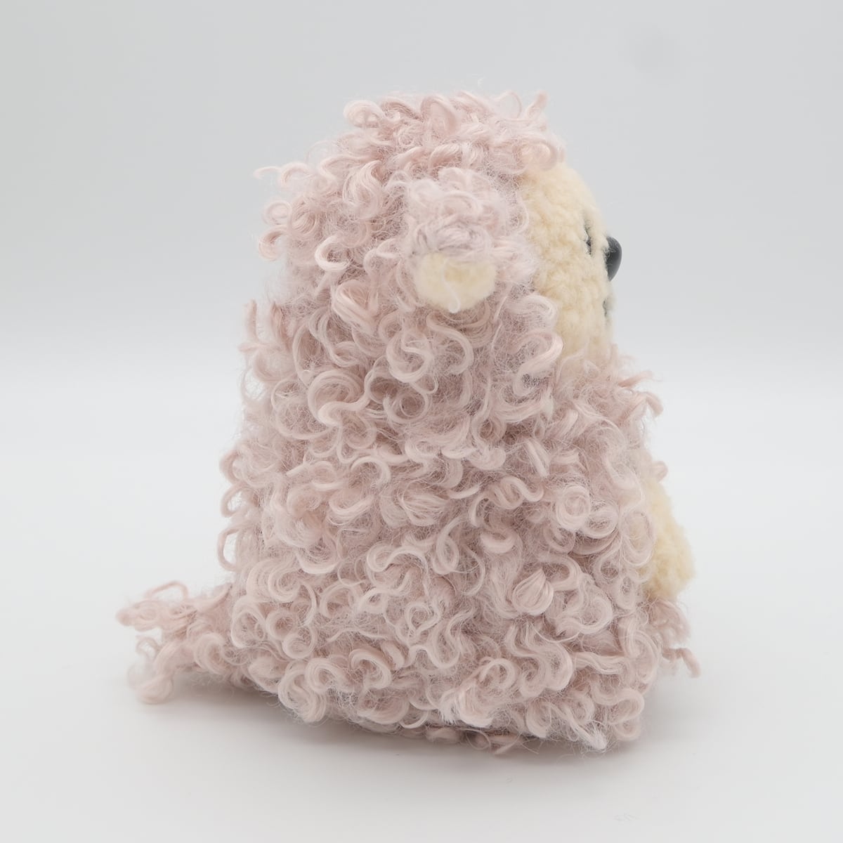 やさしいふわふわのひつじさんの新色です。特徴的な巻毛はいちごミルク色のくるくるカーリィなボア生地です。