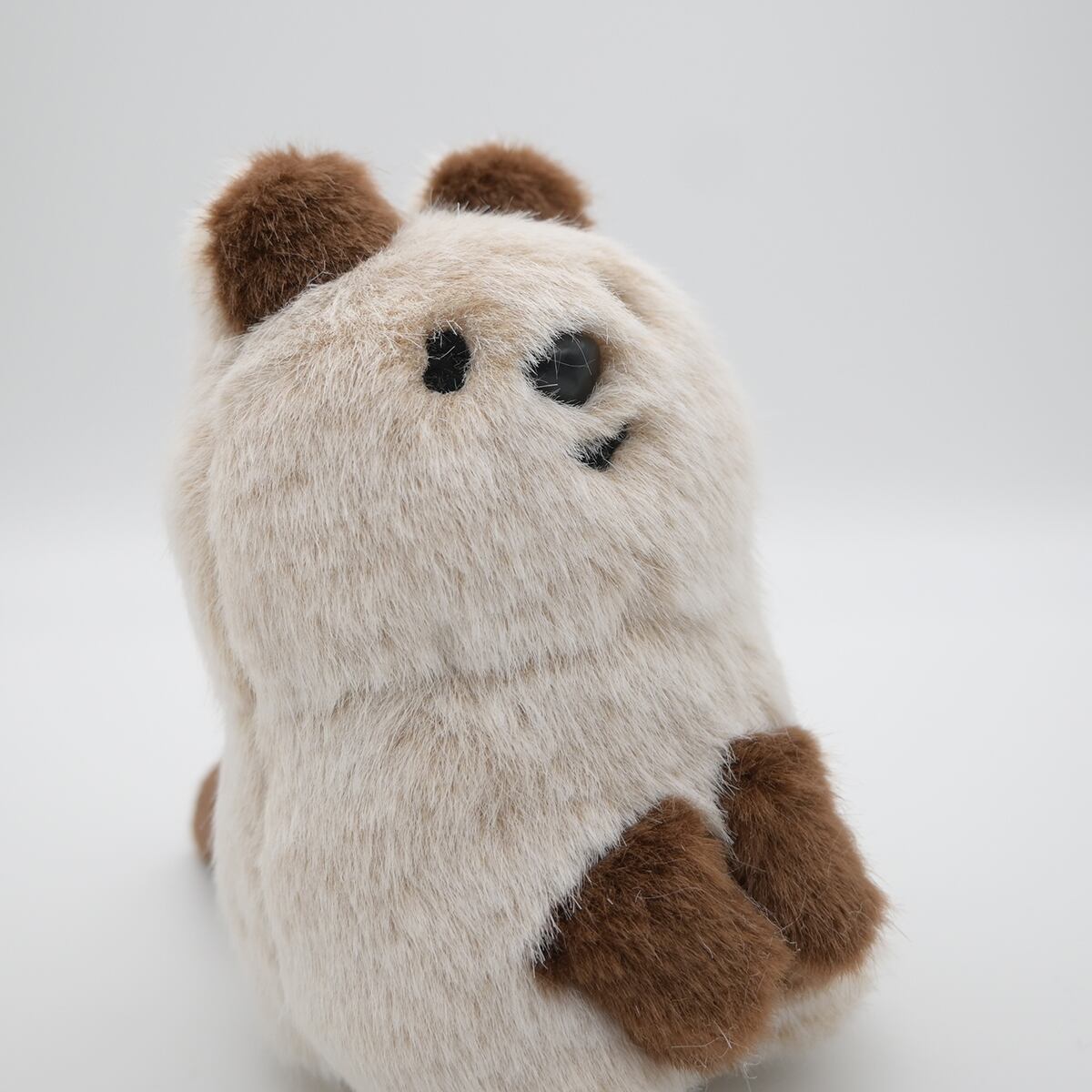 ちょっぴり垂れ目とニッコリやさしい笑顔、現地の本物のクオッカワラビーをまあるくデフォルメしたフォルムのデザインは、そばにいるとなんだか安心する存在になってくれることでしょう。