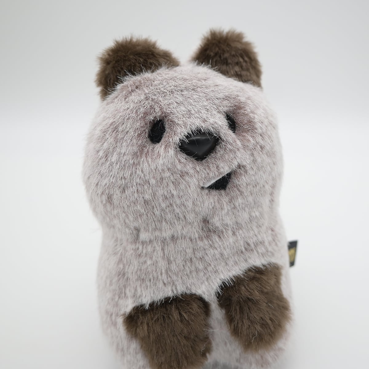 ちょっぴり垂れ目とパカッとおくちのひらいた明るい笑顔、現地の本物のクオッカワラビーをまあるくデフォルメしたフォルムのデザインは、そばにいるとなんだか安心する存在になってくれることでしょう。