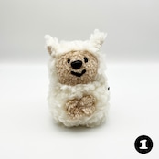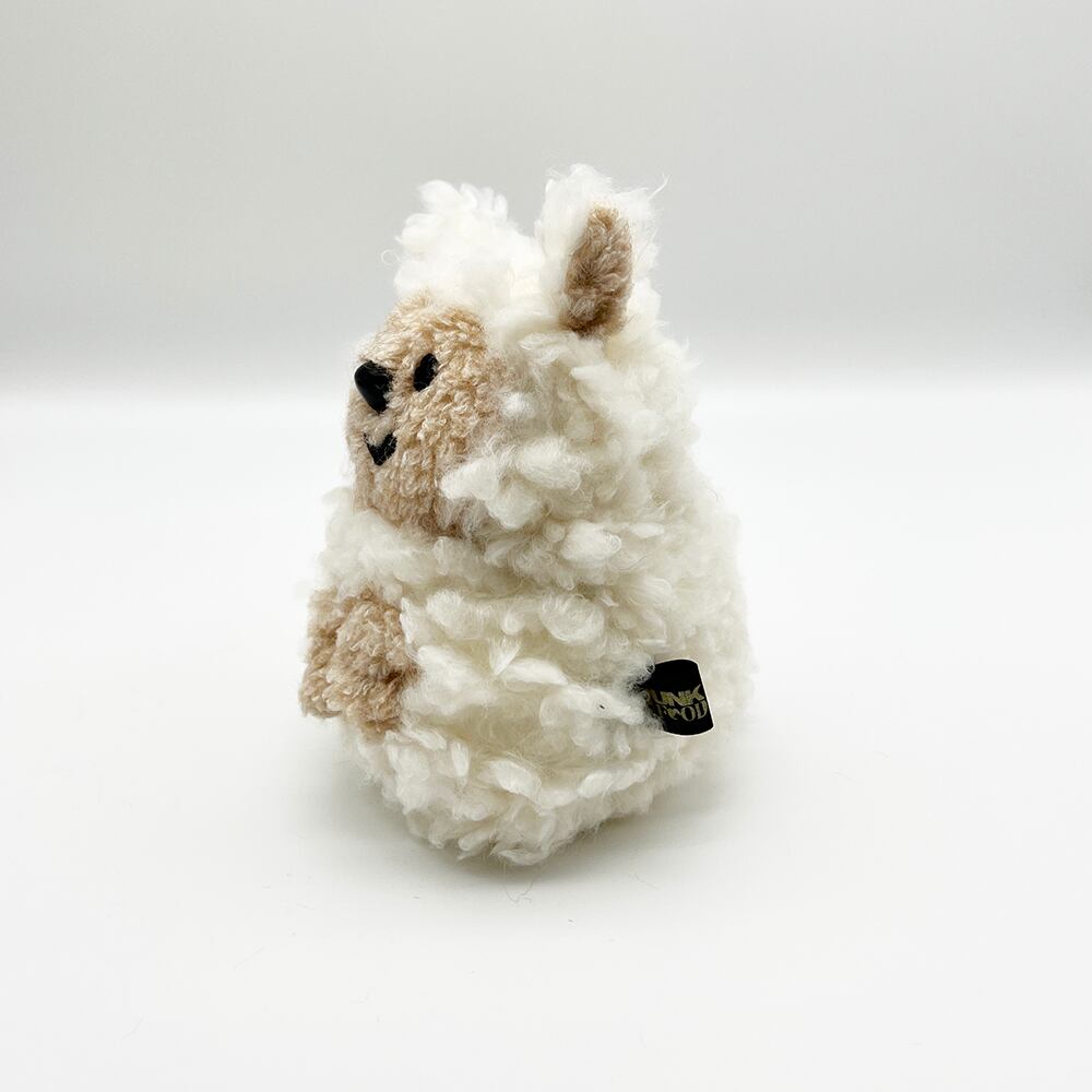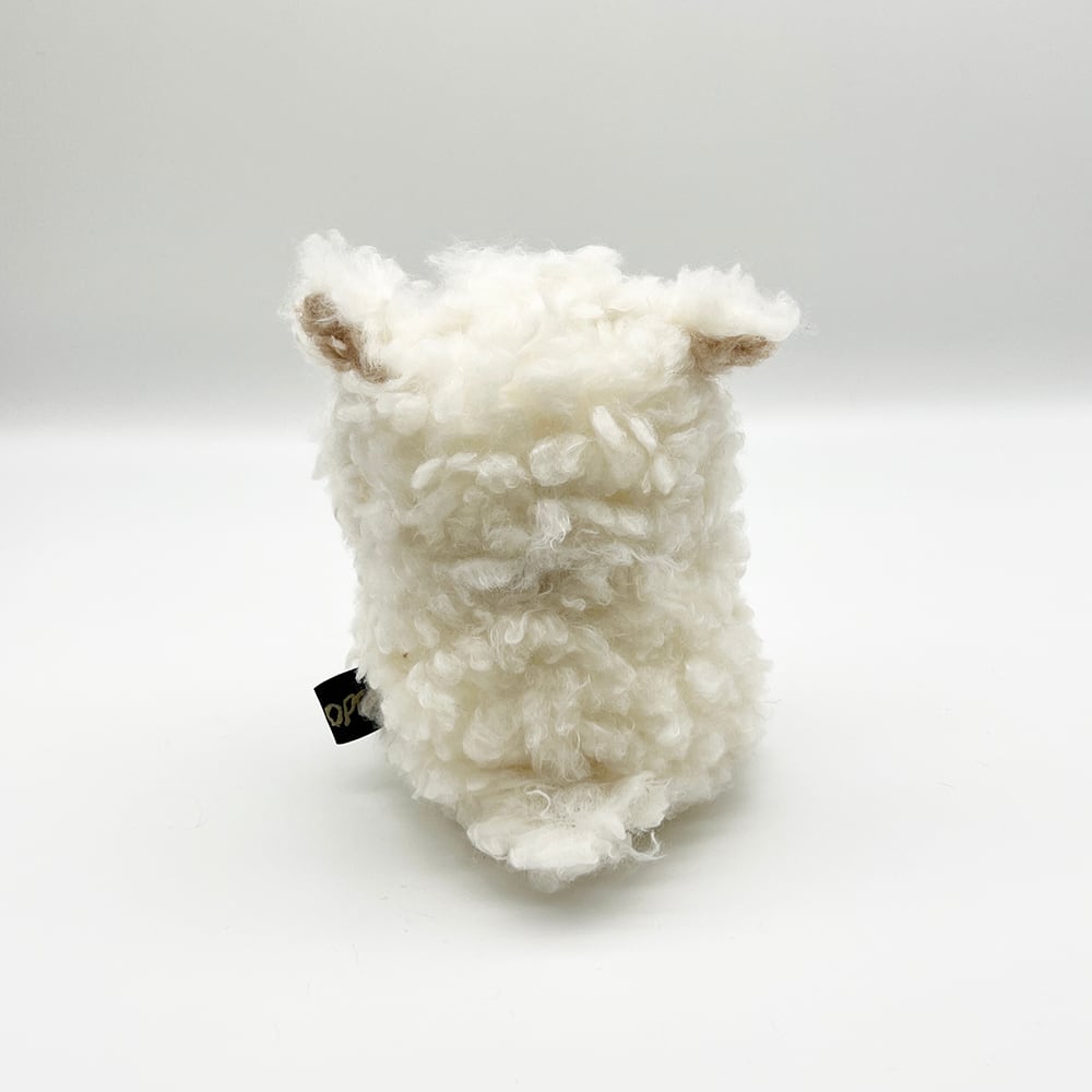 やさしいふわふわのひつじさん。綿毛のように白いアルパカボア風生地のボディと、ピンとしたお耳がポイントです。
