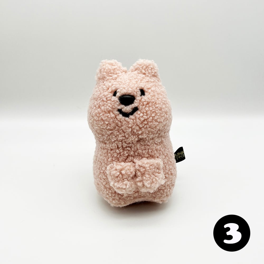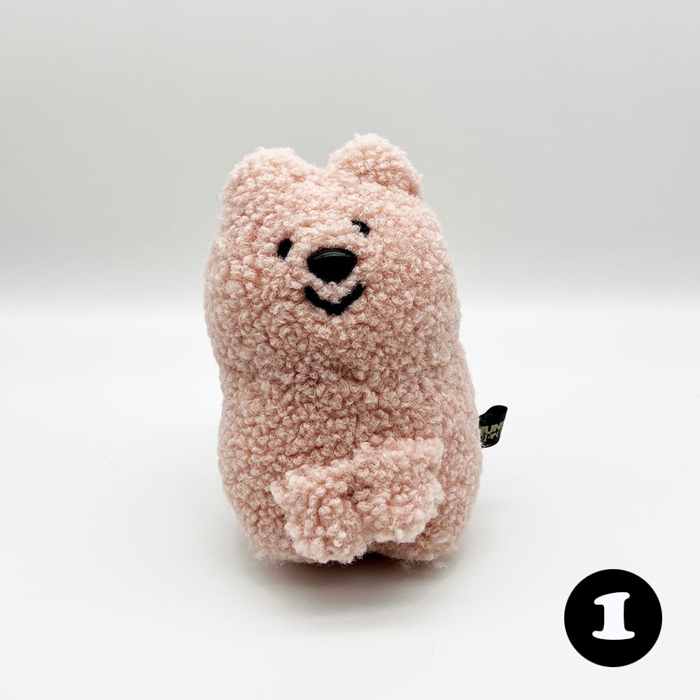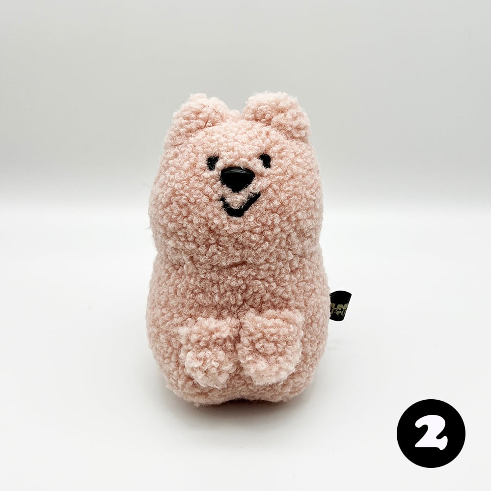 道明寺もちのようなさくらいろの、もちもちしたイタリアボア生地を使用したクオッカちゃんです。