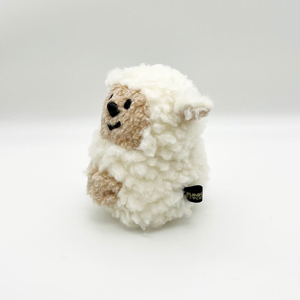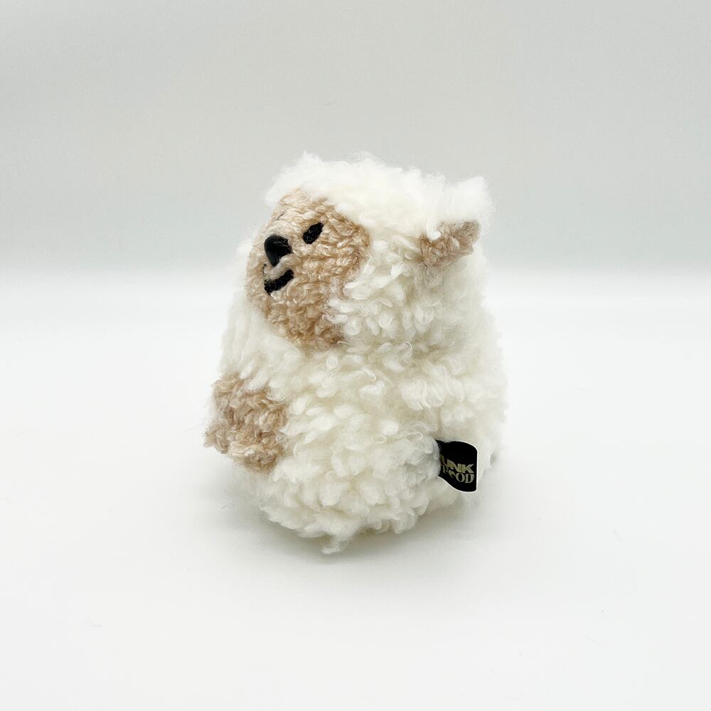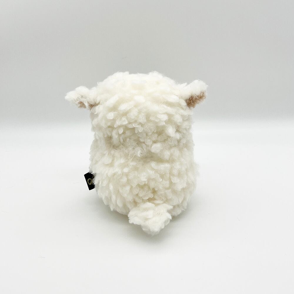 やさしいふわふわのひつじさん。綿毛のように白いアルパカボア風生地のボディと、ピンとしたお耳がポイントです。