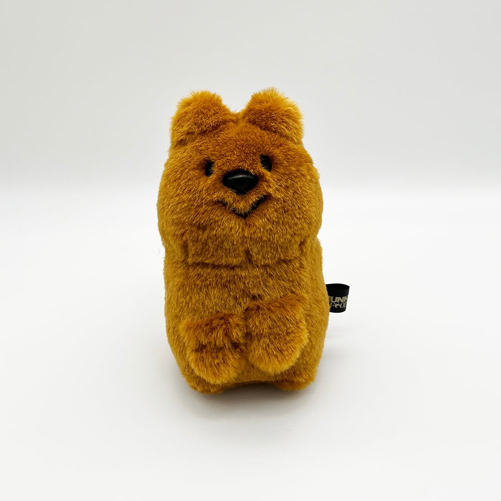 ちょっぴり垂れ目とニッコリやさしい笑顔、現地の本物のクオッカワラビーをまあるくデフォルメしたフォルムのデザインは、そばにいるとなんだか安心する存在になってくれることでしょう。