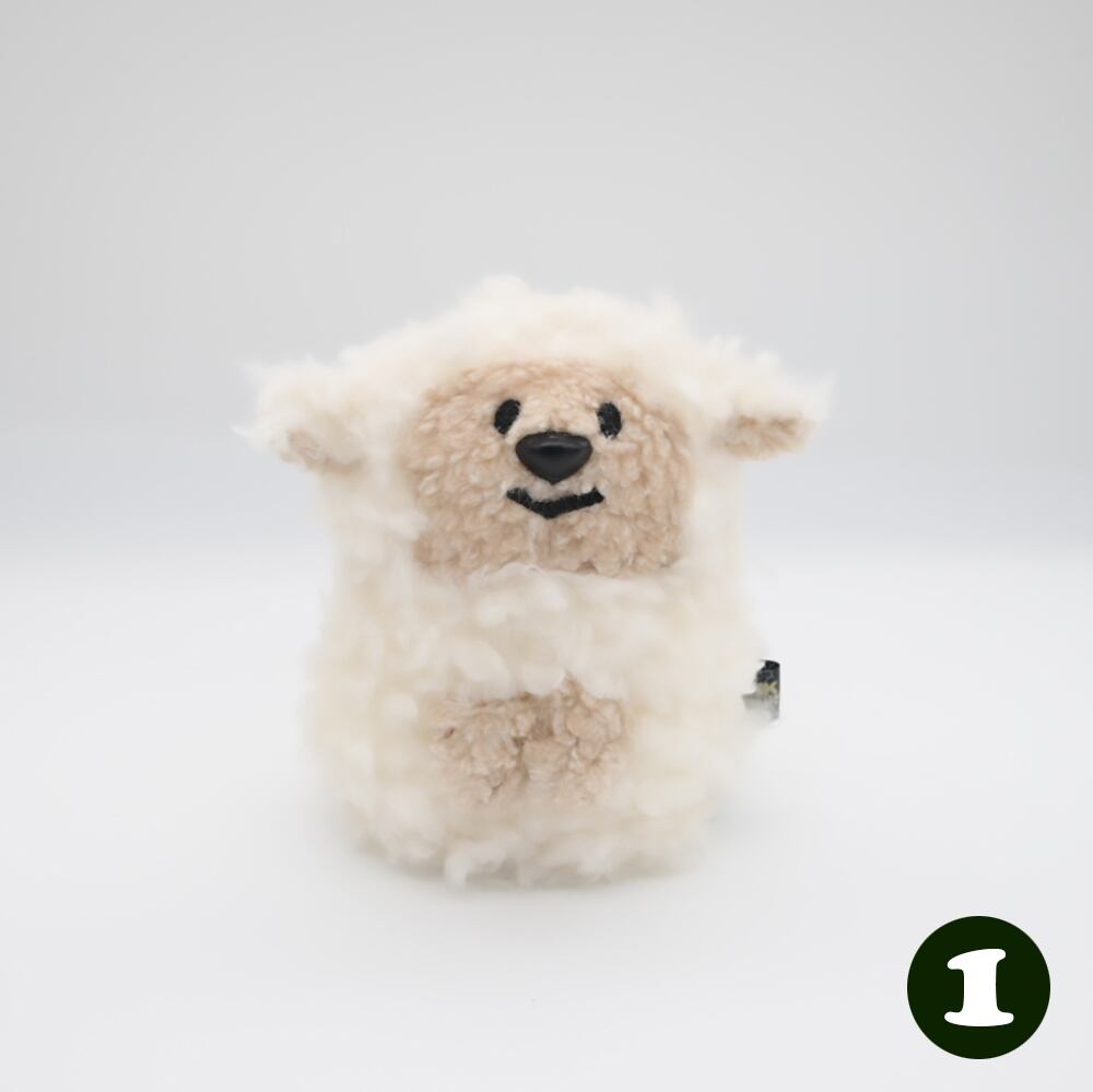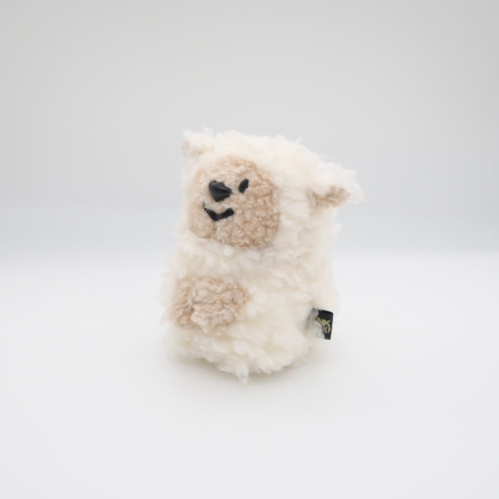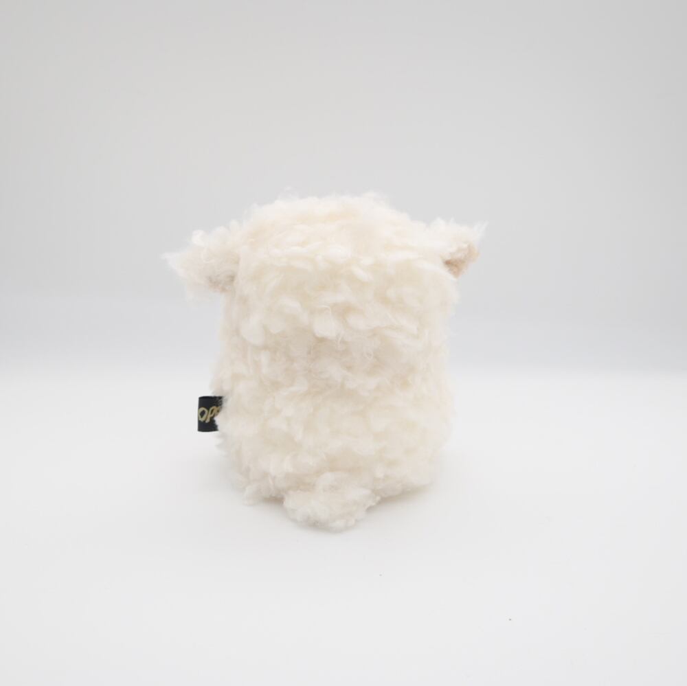 やさしいふわふわのひつじさん。綿毛のように白いアルパカボア風生地のボディと、ピンとしたお耳がポイントです。