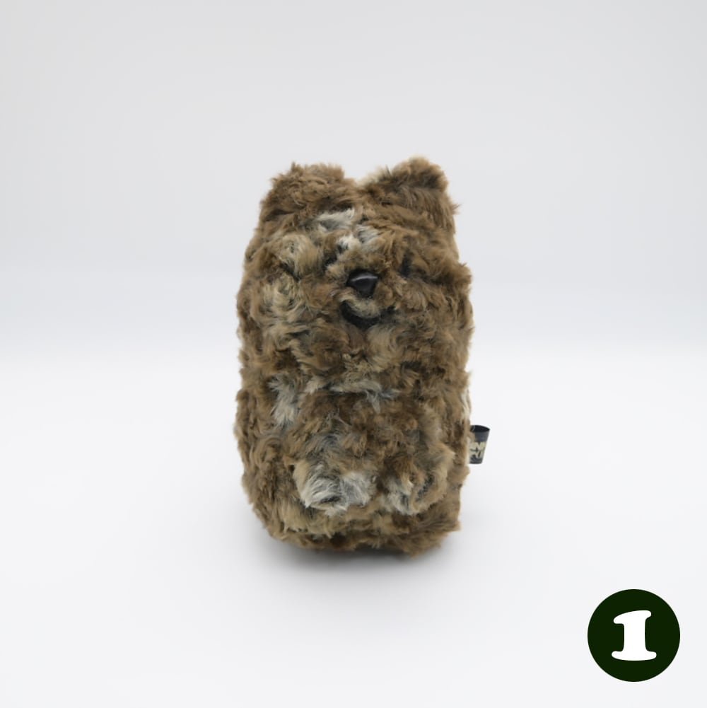 シックなミックスカラーのもしゃもしゃとした、巻毛のクオッカちゃんです。