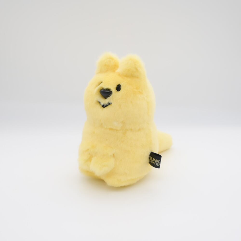 ひよこのようなふわふわ黄色の、クオッカちゃんのぬいぐるみです。撫で心地の良いムートン風生地を使用しています。
