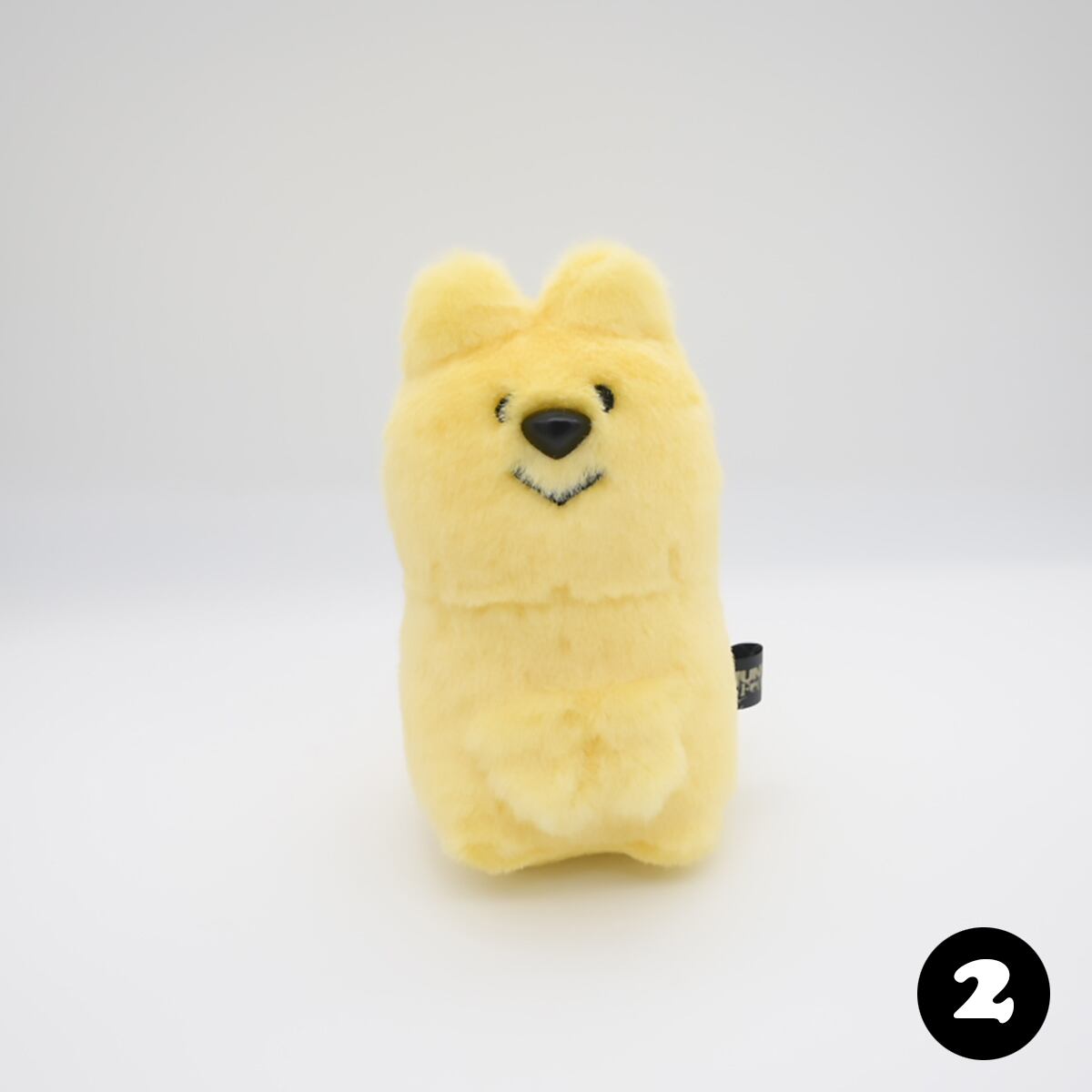 ひよこのようなふわふわ黄色の、クオッカちゃんのぬいぐるみです。撫で心地の良いムートン風生地を使用しています。