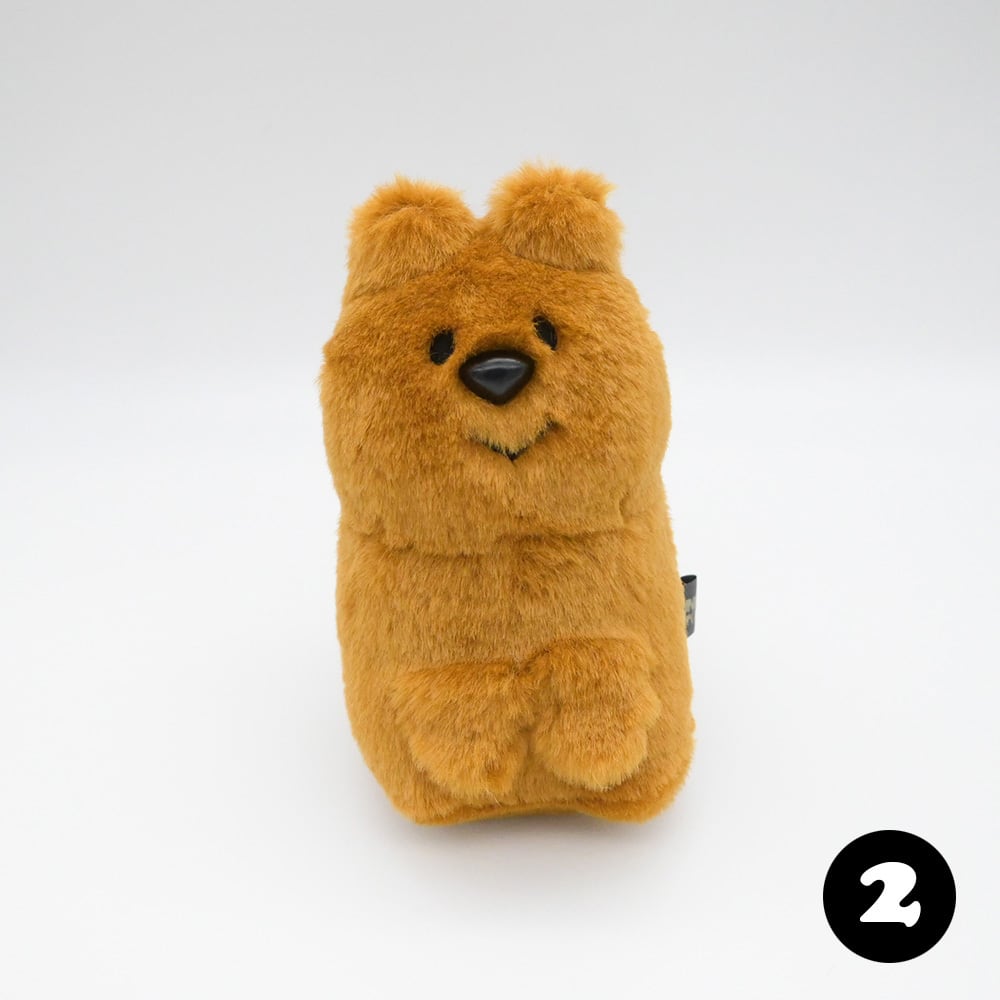 ちょっぴり垂れ目とニッコリやさしい笑顔、現地の本物のクオッカワラビーをまあるくデフォルメしたフォルムのデザインは、そばにいるとなんだか安心する存在になってくれることでしょう。