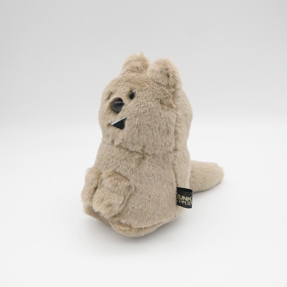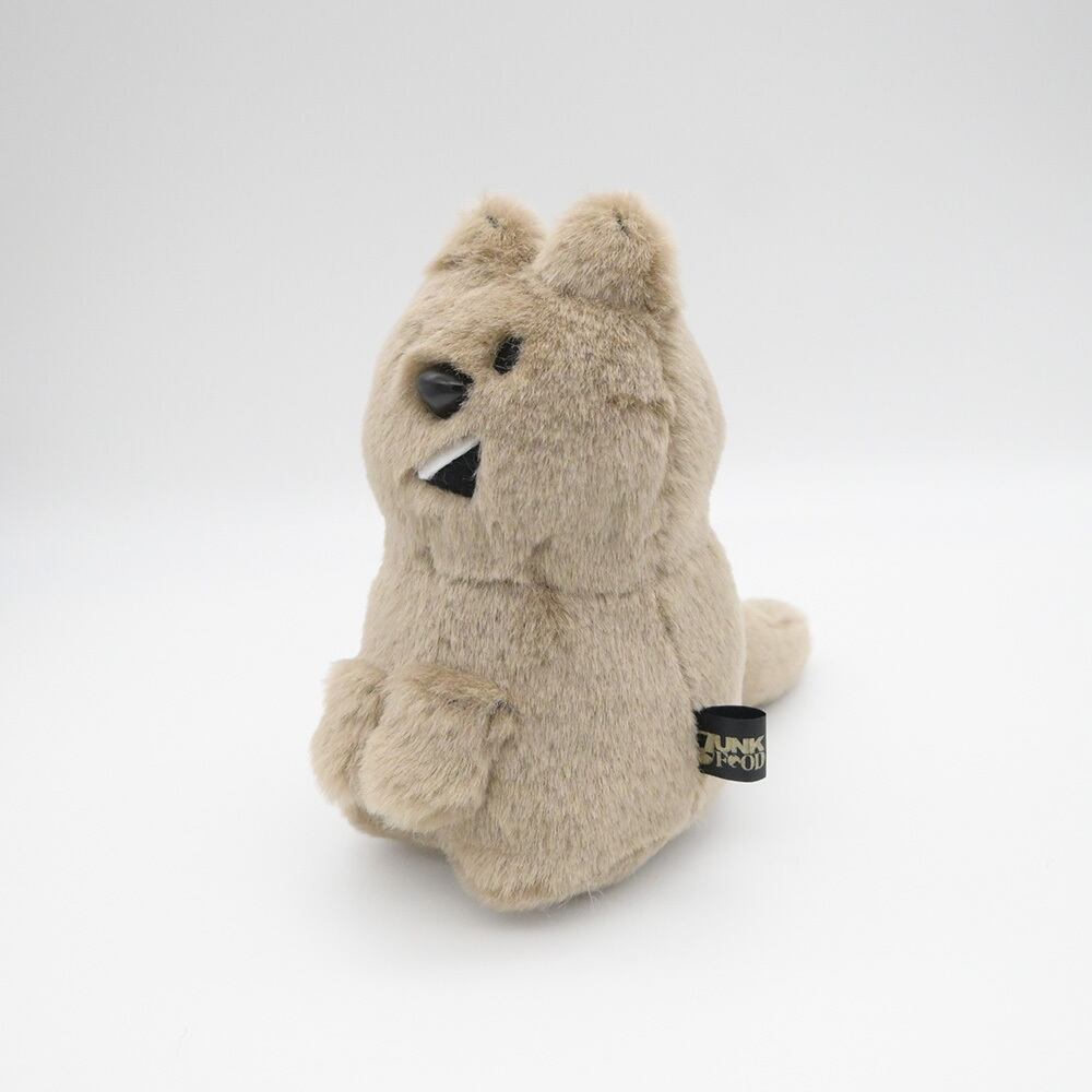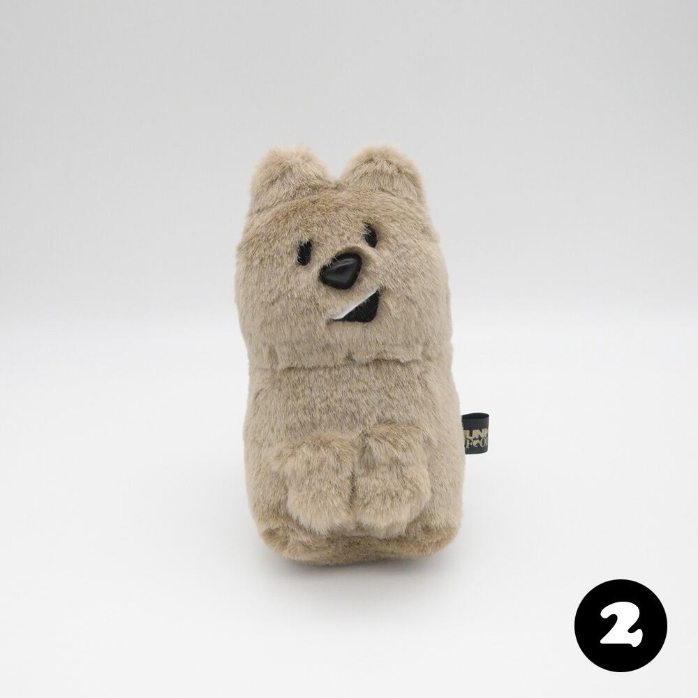 おくちがパカッとおしゃべりスタイルの、クオッカちゃんのぬいぐるみです。撫で心地の良い、グレージュ色のふわふわのムートン風生地を使用しています。