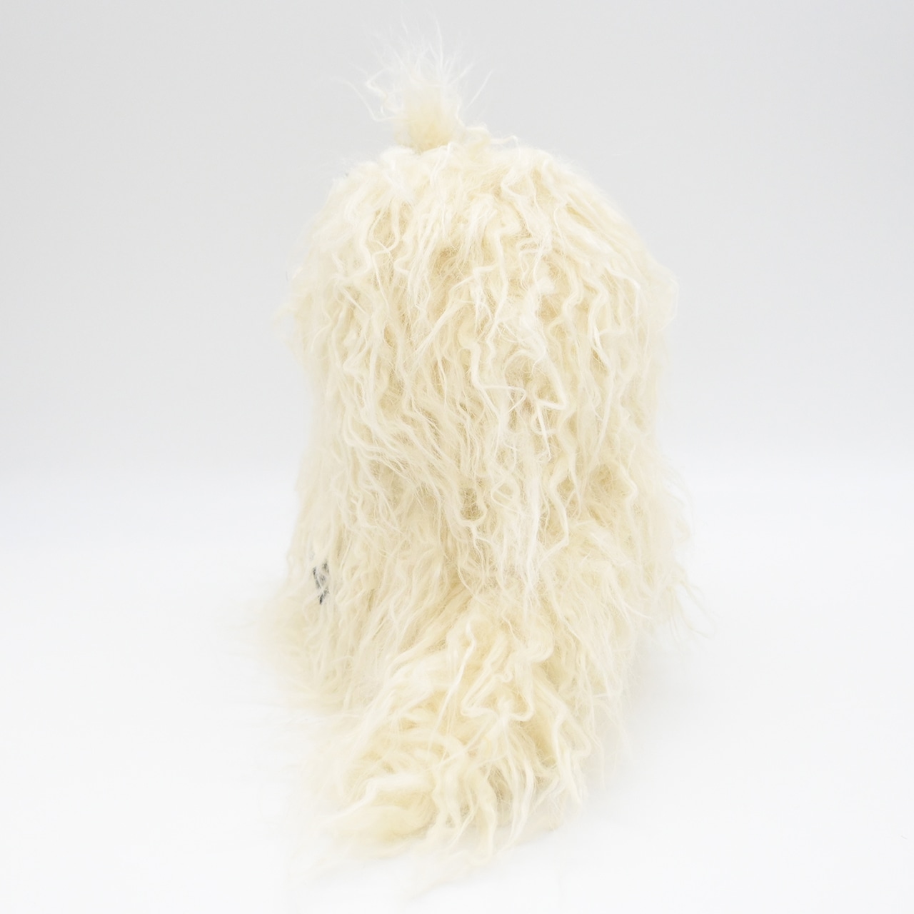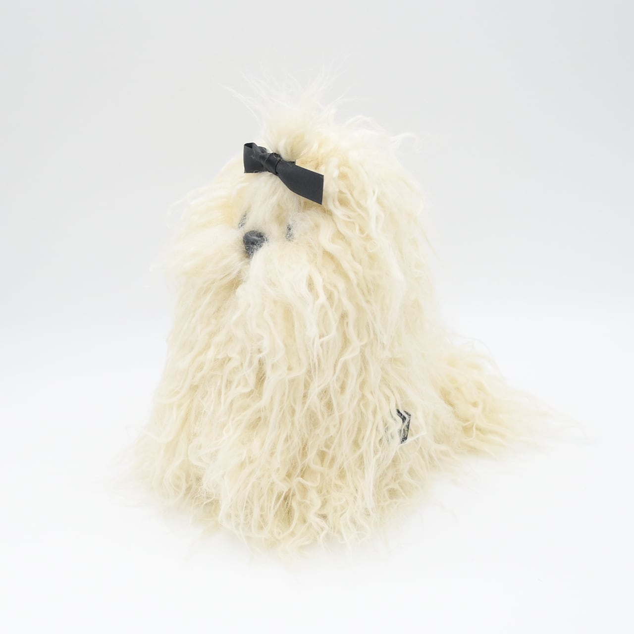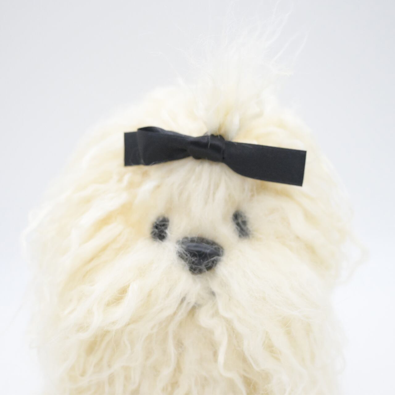 和歌山産の高級チベットラムファー生地を使用しています。前髪(?)にリボンやバレッタを付けておしゃれを楽しめます。