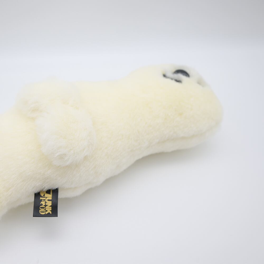なんとも言えないほんわかな表情と、ささやかな眉毛、白くてながい独特のフォルム。なによりもこの子はあざらしなのか、もしかしたら別の生き物なのか、あざらし?ちゃんの謎は深まるばかり。