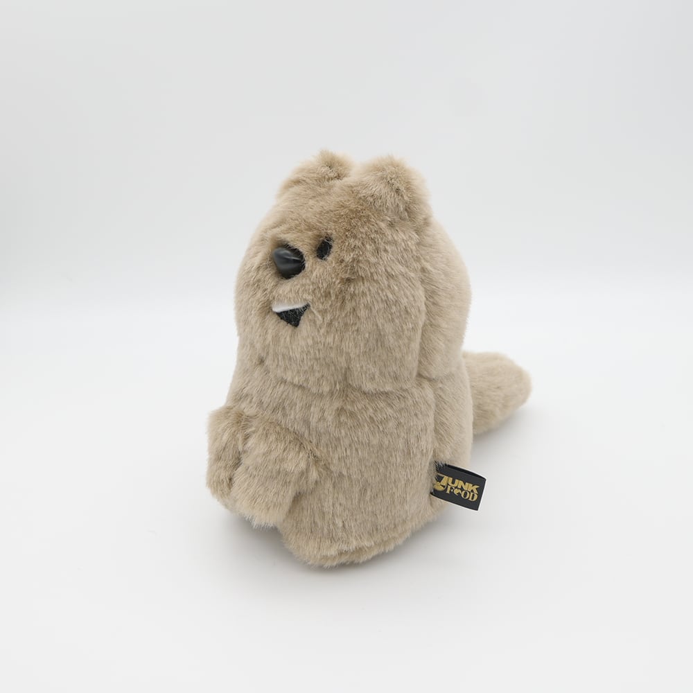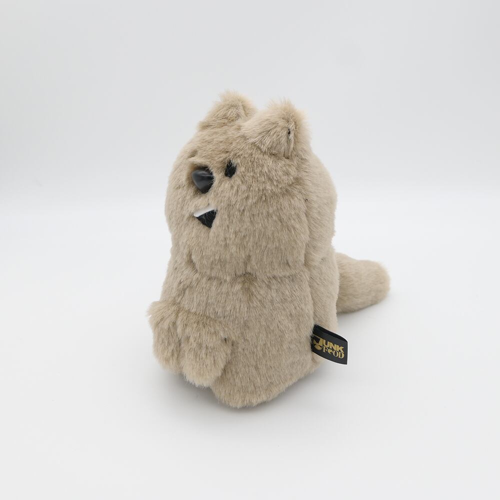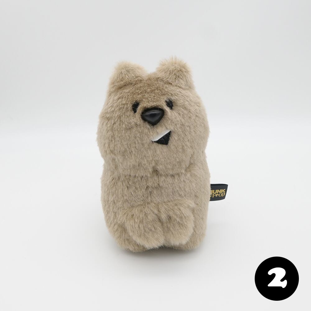 おくちがパカッとおしゃべりスタイルの、クオッカちゃんのぬいぐるみです。撫で心地の良い、グレージュ色のふわふわのムートン風生地を使用しています。