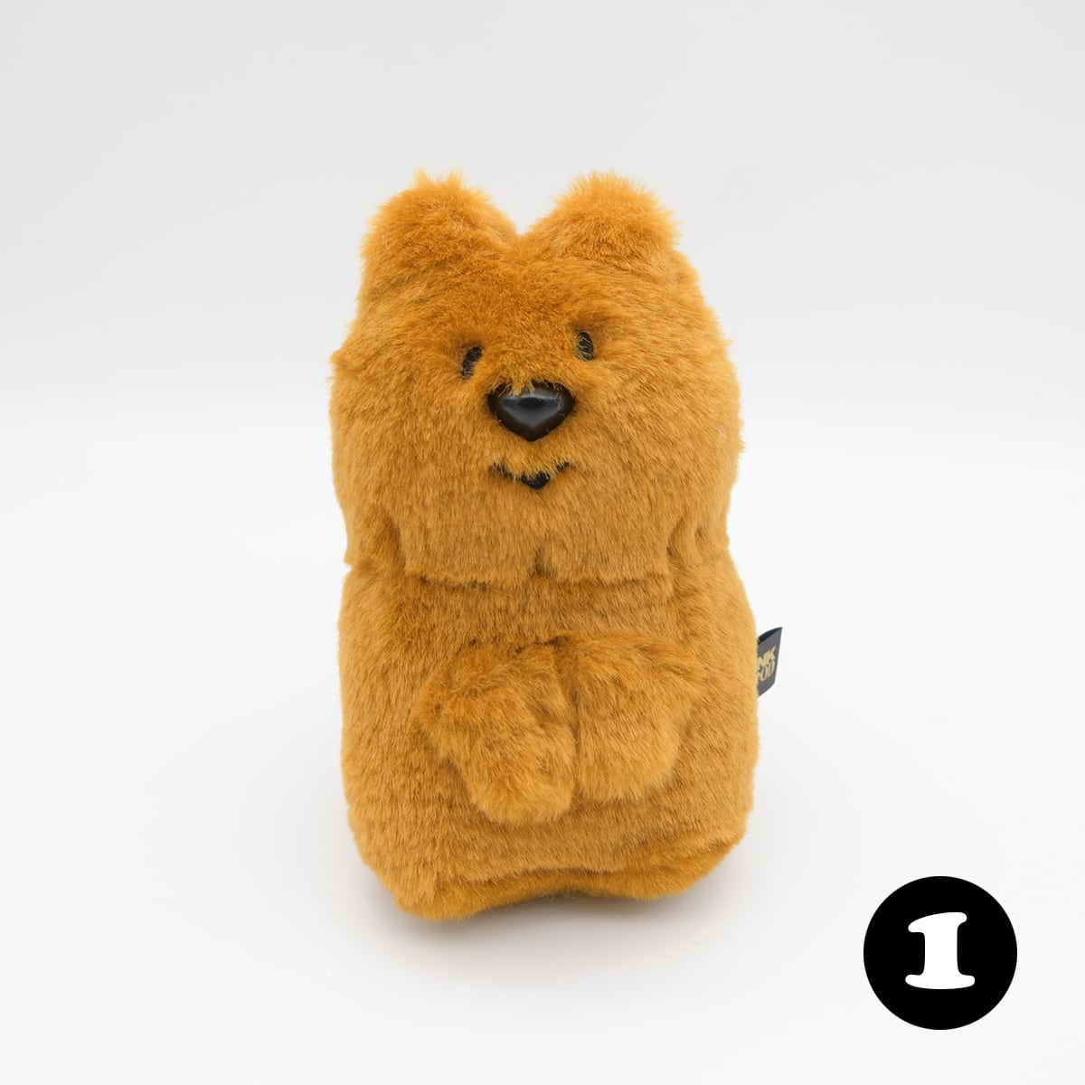 ちょっぴり垂れ目とニッコリやさしい笑顔、現地の本物のクオッカワラビーをまあるくデフォルメしたフォルムのデザインは、そばにいるとなんだか安心する存在になってくれることでしょう。
