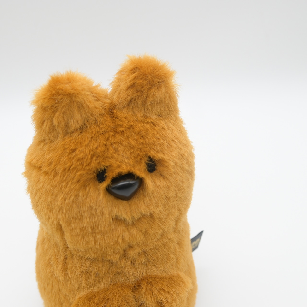 ちょっぴり垂れ目とニッコリやさしい笑顔、現地の本物のクオッカワラビーをまあるくデフォルメしたフォルムのデザインは、そばにいるとなんだか安心する存在になってくれることでしょう。