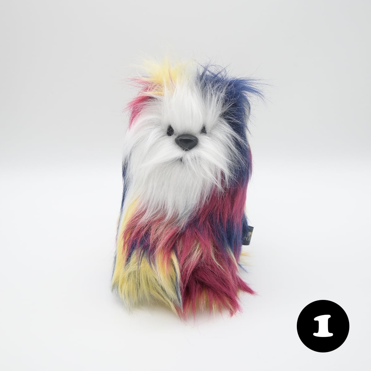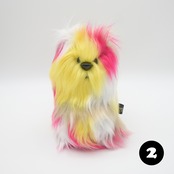 とってもおしゃれな、毛足の長いマルチカラーのフェイクファー生地を使用したクオッカちゃんです。