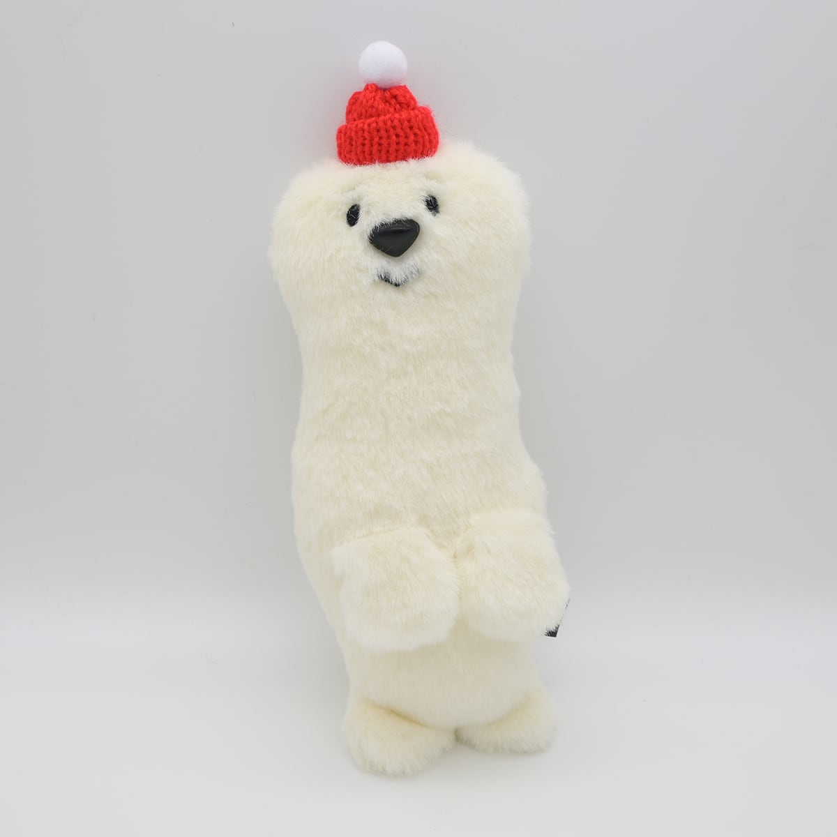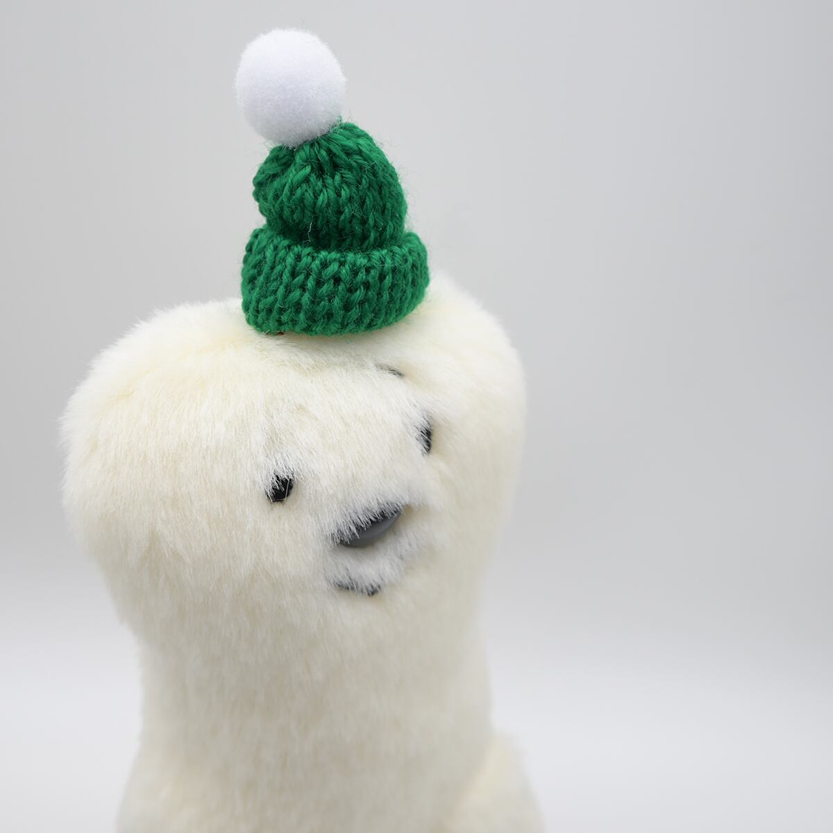 ニットの帽子は本体と糸で仮縫いで取り付けています。クリスマスが終わったら、外してあげても良いかもしれません。